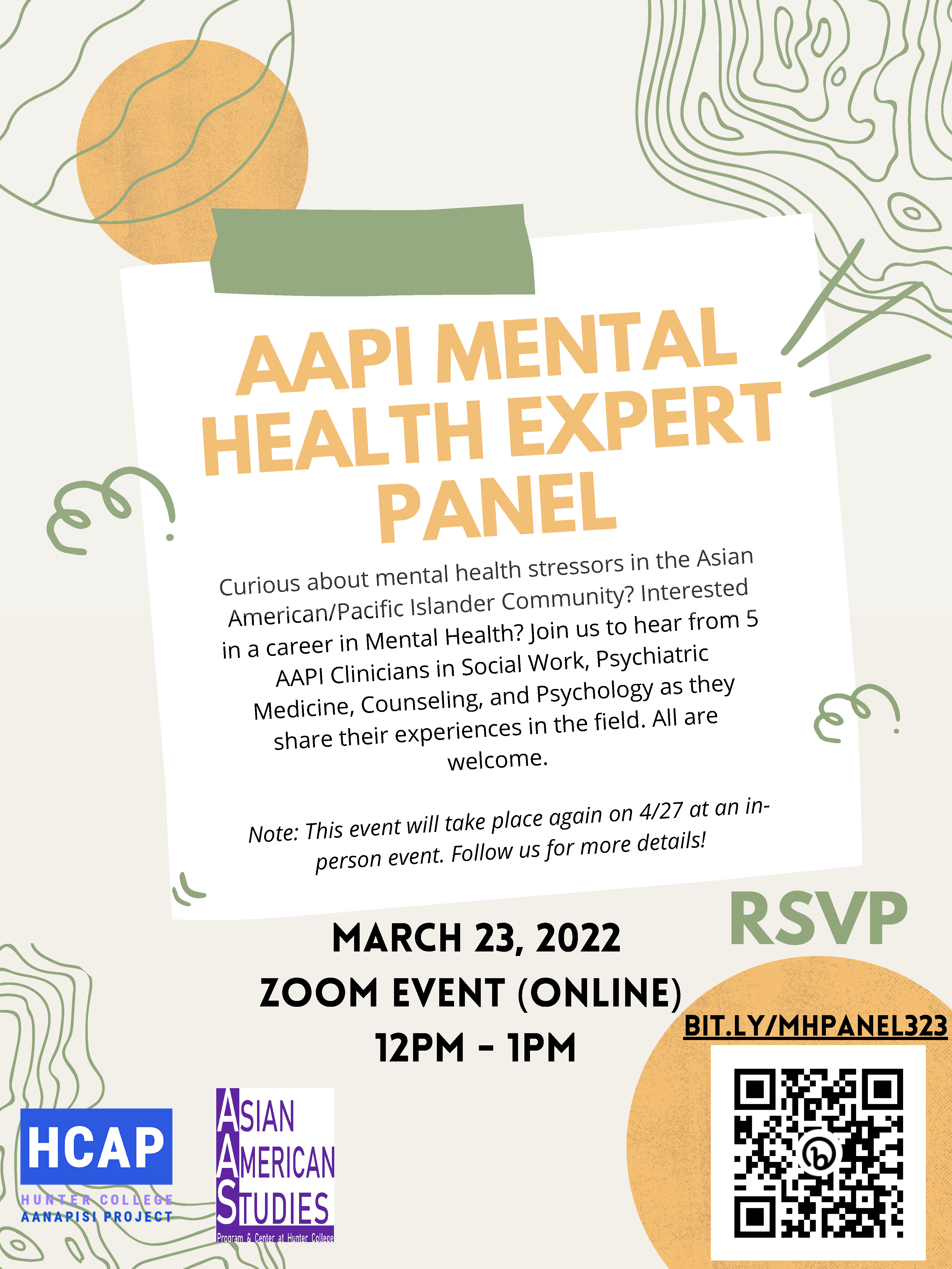 Curious about mental health stressors in the Asian American/Pacific Islander (AAPI) Community? Interested in a career in Mental Health? Join us to hear from 5 AAPI Clinicians in Social Work, Counseling, and Psychology as they share their experiences in the field. All are welcome