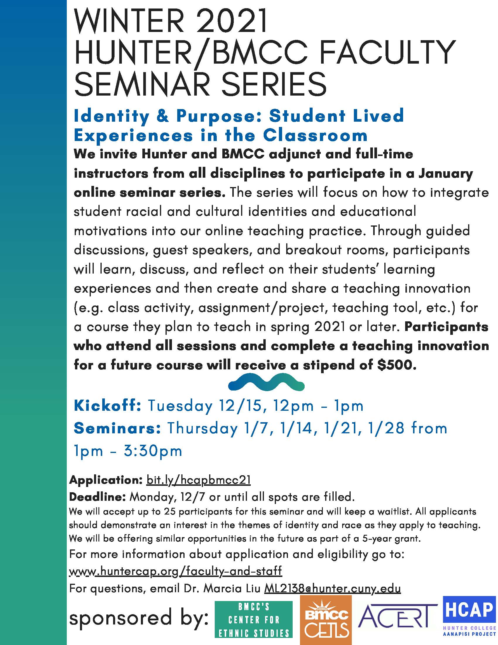 Apply by 12/7: Winter 2021 Hunter/BMCC Faculty Seminar Series