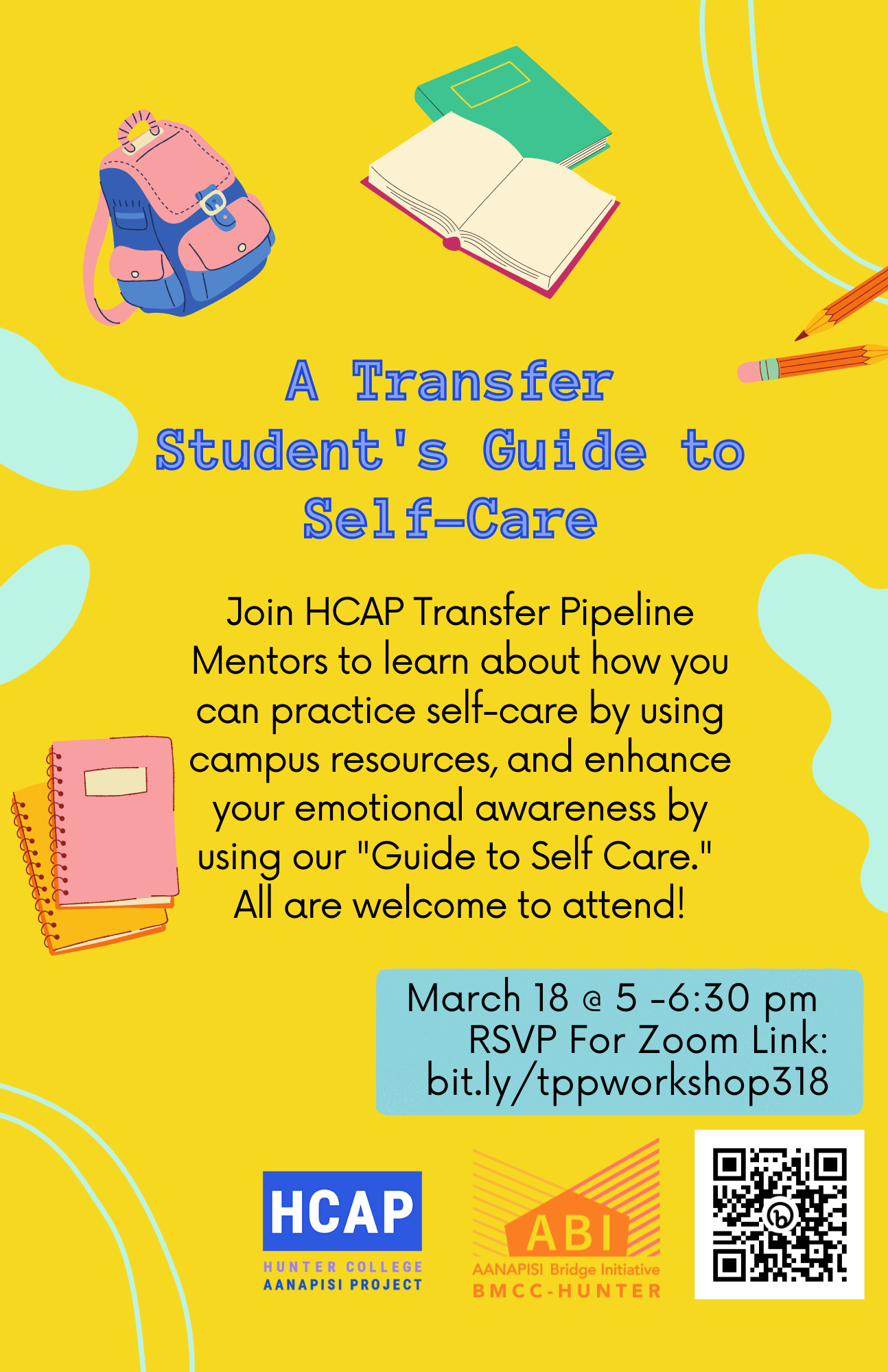 Are you struggling to care for your needs amidst midterm season? Join HCAP Transfer Pipeline Mentors for a fun, interactive event where you’ll learn about how you can practice self-care by using campus resources, and enhance your emotional awareness by using our “Guide to Self Care.” All are welcome to attend!