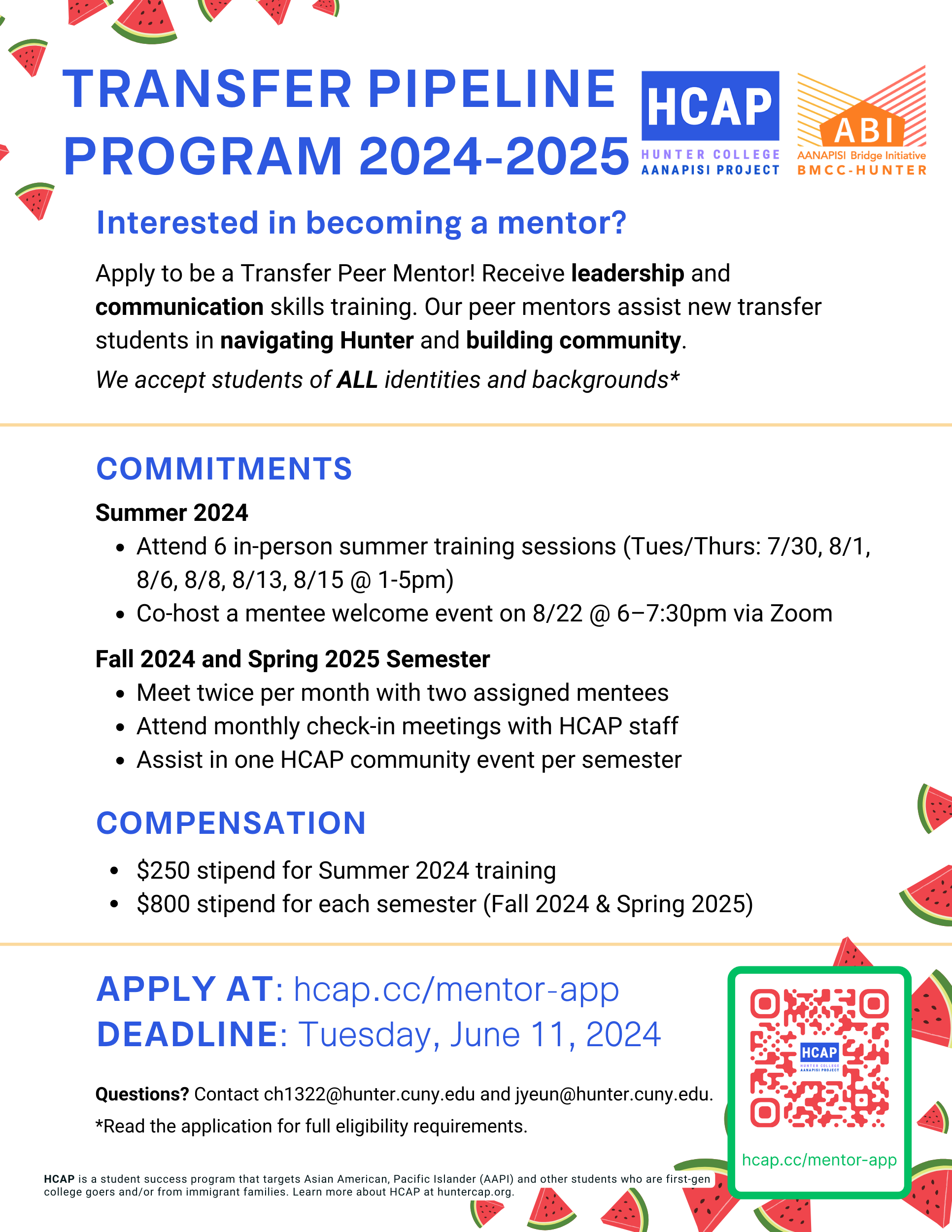 Interested in becoming a mentor? Apply to be a Transfer Peer Mentor! Receive leadership and communication skills training. Our peer mentors assist new transfer students in navigating Hunter and building community. We accept students of ALL identities and backgrounds (go here for full program details). Compensation $250 stipend for Summer 2024 training $800 stipend […]
