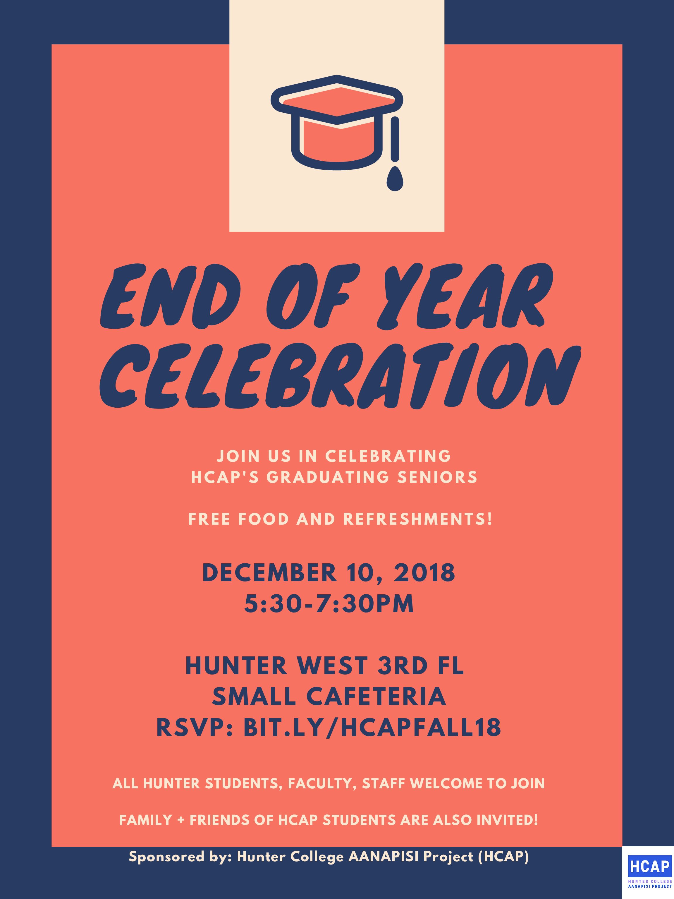 <h1> HCAP Fall 2018 End of Year Celebration <h1> Dec 10 HCAP Fall 2018 End of Year Celebration 5:30 pm - 7:30 pm