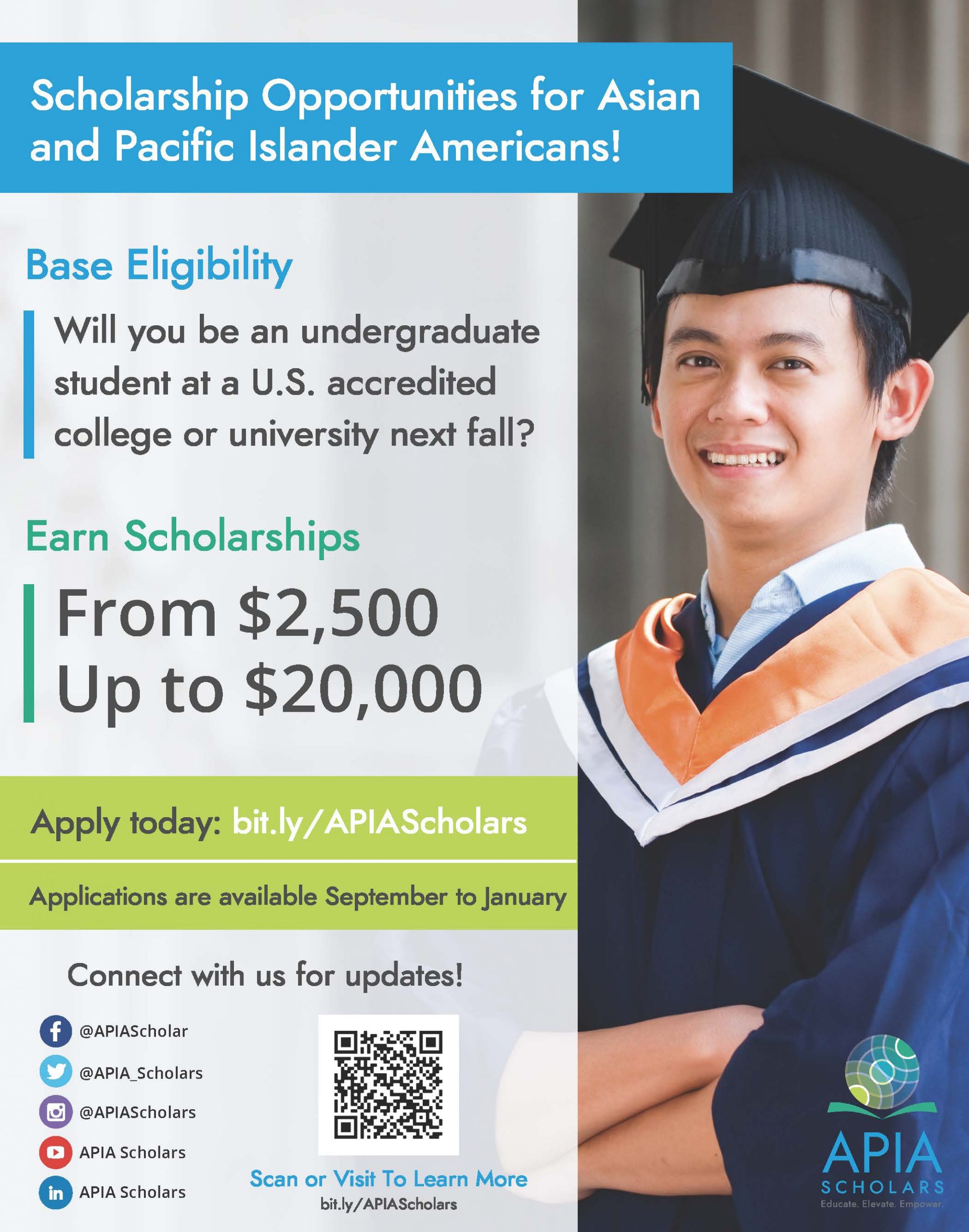 To learn more about applying for scholarship opportunities through APIA Scholars, visit the APIA Scholarship program page or view the APIA Scholars Brochure.